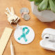 Botón de concienciación sobre alergia alimentaria con la cadena de claves de cinta verde azulada. La cinta de opciones está compuesta por tonos verde azulados. Diseños de Lil Allergy Advocates ww.lilallergyadvocates.com