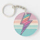 Este llamativo llavero cuenta con un relámpago atrevido con un patrón de rayas de sol de estilo retro y grueso. El diseño combina un símbolo potente con una paleta de colores suave y vintage, todo dentro de un marco circular con una textura sutil y con espiga.