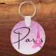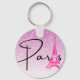 Cadena de teclas de la Torre Eiffel de París. Purpurina rosa, diseño brillantemente femenino. Así que moda.