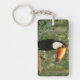En una selva tropical exuberante, un tucán vibrante se perfila elegantemente en una rama arbórea cubierta de musgo, su impresionante y sobredimensionado pico pico que contrasta brillantemente con el vegetación. El plumaje iridiscente del pájaro y su intensa mirada crean una imagen cautivadora, mostrando la belleza y el encanto exótico.