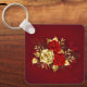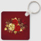 La composición de dos rosas rojas pintadas artistalmente y un rosa dorado, decorado con oro, hojas de joyas sobre fondo texturado.