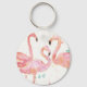 Clúster de flamencos en acuarela rosa con salpicaduras de color agua verde azuladas. Artista : Anne Tavoletti