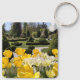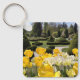 Esta cadena floral de llaves presenta una hermosa foto de tulipanes amarillos y topiarios en un jardín francés del Arboretum Volčji Potok cerca de Ljubljana, Eslovenia.