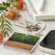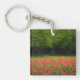 Un hermoso contraste de color en la naturaleza. Tulipanes coralinos en plena floración en la granja de tulipanes Wooden Shoe en Woodburn, Oregon, con hileras de árboles verdes y exuberantes en el fondo. ¡Una hermosa mañana de primavera! Foto tomada en abril de 2014.