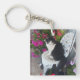 Llavero Tuxedo Cat Cute with Pretty Flowers Black Cats