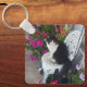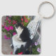 Llavero Tuxedo Cat Cute with Pretty Flowers Black Cats