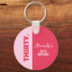 ¡Celebremos este hito de cumpleaños 30 con estas audaces fiestas de cumpleaños rosadas y rojas a favor de las cadenas de claves! Personaliza tus datos y concuerda perfectamente con la vibra del fiesta. Keychain de 30 años, el rosa y el rojo oscuro, y negrita