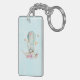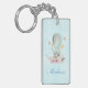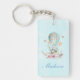 Cadena de teclas acrílicas con tu nombre personalizado. El texto se puede eliminar si lo desea. Diseñado con un encantador ilustracion de un conejito que recorre un globo aerostático decorado con un lujoso listón, flores y mariposas.