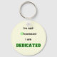 Un regalo de relleno de medias para un amigo friki, o cualquiera que pase mucho tiempo en su computadora. El texto es "No estoy obsesionado. Estoy DEDICADO" con las letras DEDICADAS en verde. La O de obsesionado ha sido reemplazada por un icono de botón de energía verde. En un fondo color crema pálido.