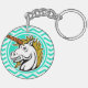 Unicornio blanco Guay sobre verde agua; estampado de rayas de chevron color turquesa y blanco. Un gran regalo para los fanáticos del unicornio de fantasía.