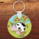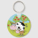 Una linda vaca y ternera en un campo con manzanos. Este diseño parece realmente efectivo en esta cadena de claves