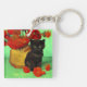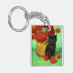 Llavero Van Gogh Black Kitten Red Flowers