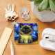 Keychain con un gato siamés en la pintura Starry Night de Van Gogh. Esta belleza esponjosa posa frente a un cielo azul nocturno con luna brillante y estrellas. ¡Un regalo acogedor para los amantes del gato y de los coleccionistas holandeses de arte!