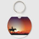 Este diseño es un vaquero montando un caballo. El vaquero a caballo se dirige a través de la tierra al atardecer. Este vaquero montando un diseño de caballo se ve genial en esta Keychain
