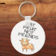 Cadena de llaves vegana con una hermosa vaca personalizado con manchas marrones con la leyenda Fruto de la cometa no amigos con gorras todas escritas a mano.