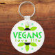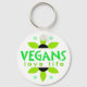 Atractivo diseño floral verde en este anillo de claves para los veganos con las palabras Vegans Love Life.
