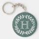 Acceder con estilo con esta cadena de teclas monogramada personalizada. El diseño presenta hojas de laurel modernas y tipografía elegante inicial. El monograma en el centro es sencillo para el personalizar. Hace una elegante y útil dama de honor, padrinos y una fiesta nupcial, idea de regalo y complementa la vegetación boda moda.