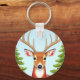 Ilustracion detallado de un ciervo con cuernos en un paisaje sereno y nevado con vegetación y setas.