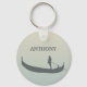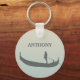 Crea un regalo personalizado con un estilo veneciano. Esta cadena de llaves tiene un ilustracion de silueta de un gondolier y una góndola de color gris sobre un fondo de color ocre de amarillo claro y azul claro. El grabado gris está listo para ser personalizado con un nombre u otro texto.