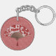 Cadena de teclas en un clásico patrón de ventilador japonés PH en una impresión vintage de kimono japonés -un patrón de hojas estilizadas en todas partes, alternando espacio positivo y negativo, en rojo y blanco chino oscuro- en un fondo con patrones coordinados