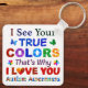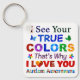Inspiradora cita de "Veo tus verdaderos COLORES por eso te amo" con hermosos acertijos de autismo para apoyar y amar a alguien con autismo.