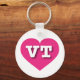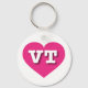 Este llavero cuenta con un vibrante corazón rosado caliente que contiene las letras negrita, blanca y alta del funda VT, la abreviatura oficial de Vermont, el estado montañoso verde.