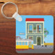 Llavero Vieja casa de Lisboa con gatos y tranvía amarillo