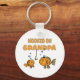 Enganchado al abuelo con dos peces naranjas y un anzuelo de pescar colgando.
