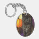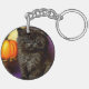 ¡Keychain con un gatito vintage de Halloween! Un gatito negro esponjoso posa junto a las calabazas sobre un fondo morado. ¡Un regalo divertido para las fiestas de Halloween y para los amantes del gato!