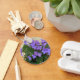 Agradables violetas azules contrastan con estuco blanco para decorar esta cadena floral. Parar con la coordinación de mousepad, tazas, delantal.