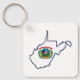 Aquí hay una cadena de claves con un contorno de estado de Virginia Occidental dibujado a mano con la bandera del estado dentro. Perfecto para el virgen occidental que quiere mostrar su orgullo por su estado.