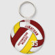Esta cadena de claves personalizada de voleibol masculino con el nombre del equipo incluye un voleibol de marrón, amarillo y blanco sobre el que se puede personalizar el nombre del jugador y el número de camiseta más el nombre del equipo escolar y la mascota - por katz_d_zynes