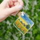 Vse bude Ukraina. В с е б у у~ BurnBurn. Llavero tipo chapa. Diseño a ambos lados de la cadena de claves. Campos de girasoles. Bandera ucraniana en los cielos.