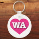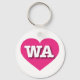 Este llavero presenta un vibrante corazón rosado caliente que contiene las letras audaces, blancas y altas del funda WA, la abreviatura oficial del estado de Washington, el estado de siempre verde.