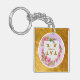 Personalized Floral Gold Frame Keychain | Custom Name Watercolor Flower Keyring Gift.