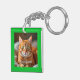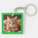 Vibrant, colorful pop art cats decorate one side of this fun personalized keychain. Customize the text and add your own favorite photo to the other side. You can change the background color (shown here in green) to any color you like. *PLEASE NOTE: when choosing your custom photo, uploading an image already cropped to be square works best.