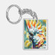 Llavero Whimsical Cockatoo Ave Amarillo Poppies Floral