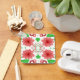 Llavero Whimsical Red Flowers Green Leaves On White Art