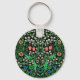 Cadena de teclas en un papel tapiz floral de William Morris Jacobean vintage de tulipanes rosa de coral, margaritas amarillas, violetas azules, flores blancas delicadas y follaje verde jade, sobre un fondo negro, realzado digitalmente y colorido