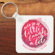 Round keychain incluye un divertido texto "Wine a Little Laugh A Lot" sobre una tintura de vino tinto - personalizado con cualquier información. Las cadenas clave hacen regalos memorables para la familia y los amigos o crean para ustedes mismos.