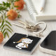 This picture shows a cute white cartoon cat wearing a brown polka-dot sleeping cap and a matching brown bow. The cat is winking with one eye and looking to the side.