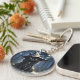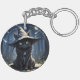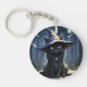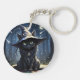 Este llavero de brillo presenta una amigable bruja negra de gato finalizada en papel digital
