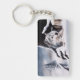 Un lobo tendido en la nieve del invierno con un castillo detrás del lobo.