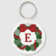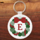 Este Navidad geométrico festivo de la cadena de teclas de la corona presenta un monograma de personalizable. La corona en el diseño digital original está hecha de puntos verdes en tres tonalidades y tamaños diferentes. Una cadena de puntos rojos más pequeños que recuerdan a los vientos de arándanos alrededor del patrón circular. La corona está coronada con un arco rojo. Imagen creada digitalmente. Copyright © 2012 Claire E. Skinner. Todos Los Derechos Reservados.