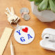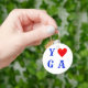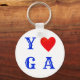 Llavero de yoga elegante. Texto de yoga azul con corazón reemplazando la letra o. ¡Cuando hacemos yoga, la Divinidad está en acción!