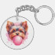 Llavero Yorkshire Terrier Dog w Pink Bubblegum Watercolor