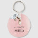 Un anillo especial de llave de ballet para la bailarina. Este llavero dice 'en Pointe', sin embargo puede cambiarse a cualquier palabra. El diseño se personaliza fácilmente introduciendo su propio nombre. Las zapatillas de ballet están colocadas sobre un fondo rosa y ruidoso.