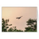 Entre los árboles y entre los colores cálidos de la noche, un águila calva se acerca a su árbol de anidación.