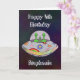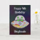 En este divertido ilustracion de ciencia ficción de Richard H. Fay, extraterrestres verdes y groovys montan en un platillo volador decorado con flores, corazones, una estrella y un arco iris.