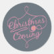 Nuestro Naranja y Rosas Navidades viene pegatina de vacaciones es una gran coincidencia con nuestra colección de vacaciones de Naranja y Rosa de ciervos. Las características incluyen un fondo azul con un elegante texto de tipografía de rosa de cachemira y naranja de cadmio que dice que los Navidades están llegando.